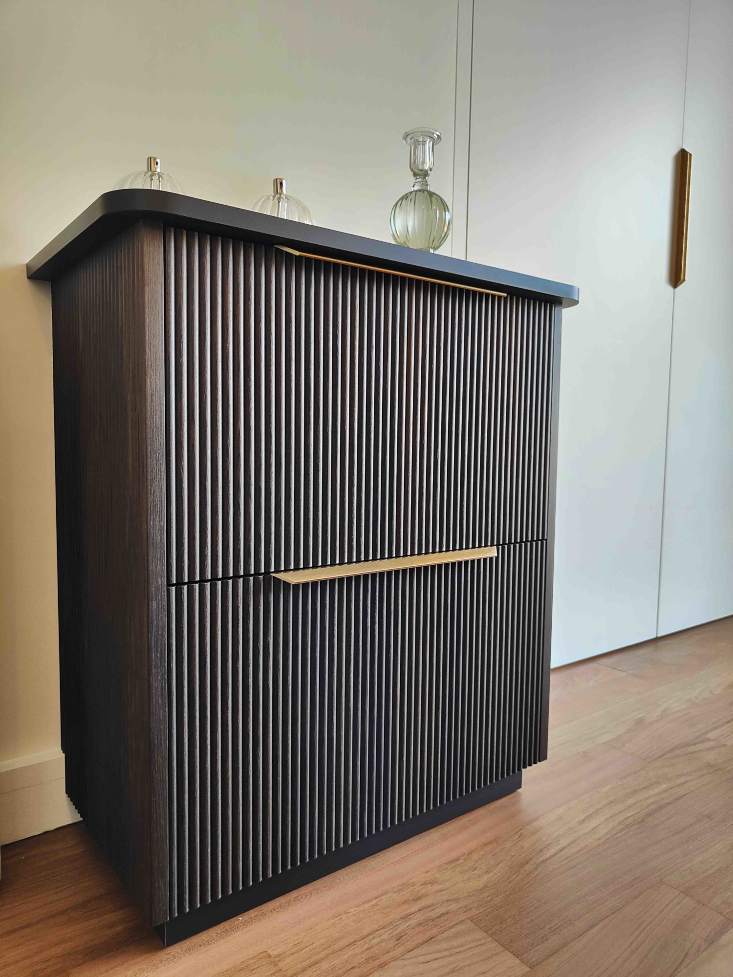 Le Dressing comme écrin : Conçu sur-mesure, il devient un élément décoratif à part entière, alliant esthétique bois et éclairage LED intégré pour une ergonomie parfaite.